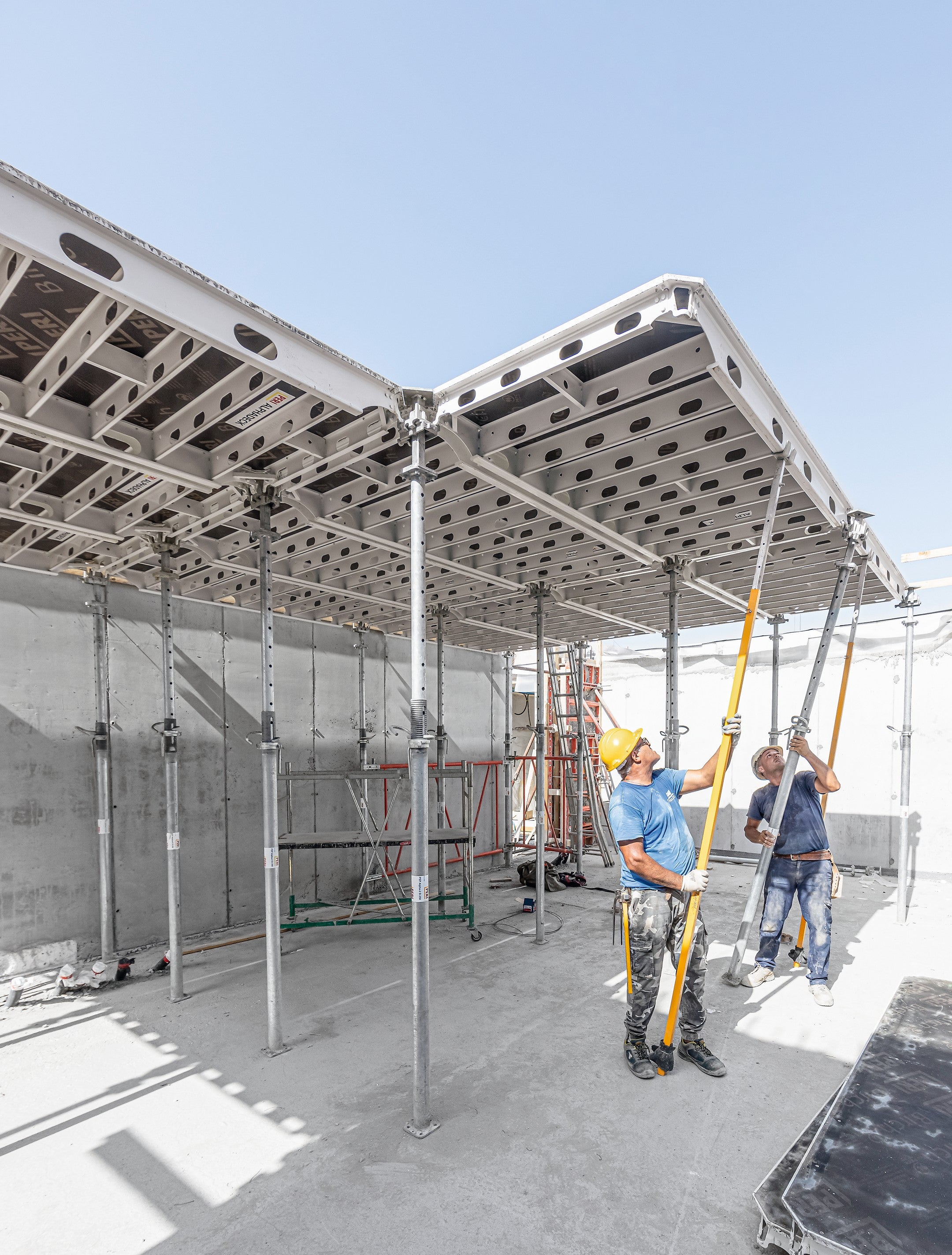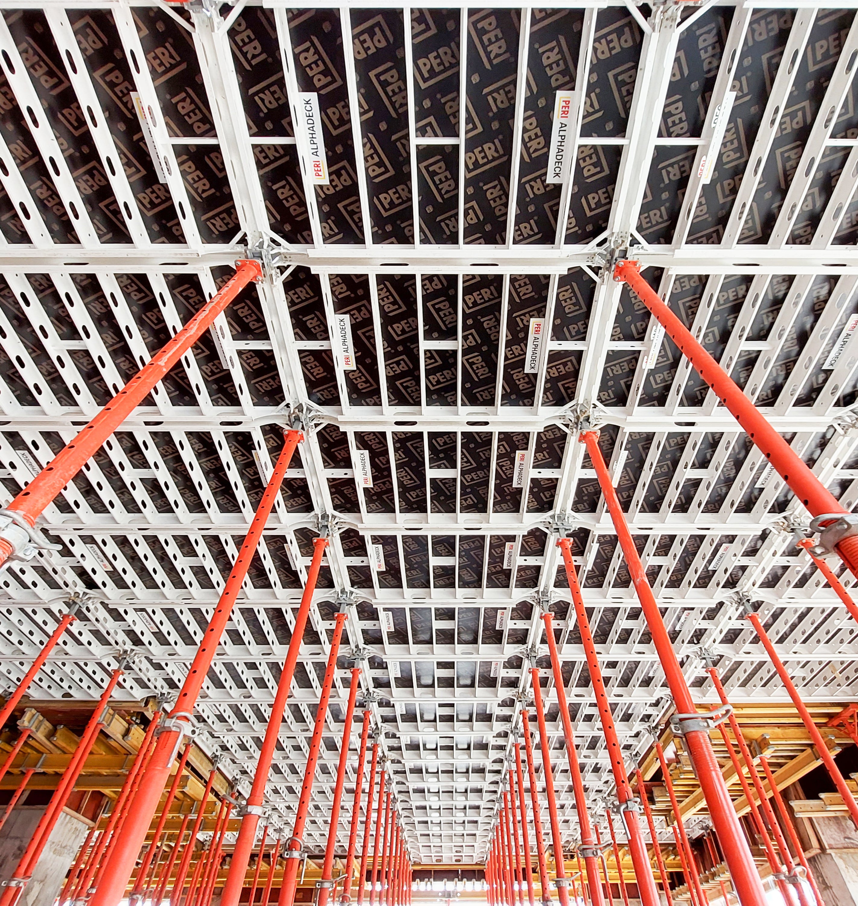 ALPHADECK offers considerable time and cost savings due to the large panels and possibility of early striking. Only one prop is required for every 2.88m squared of slab surface.
